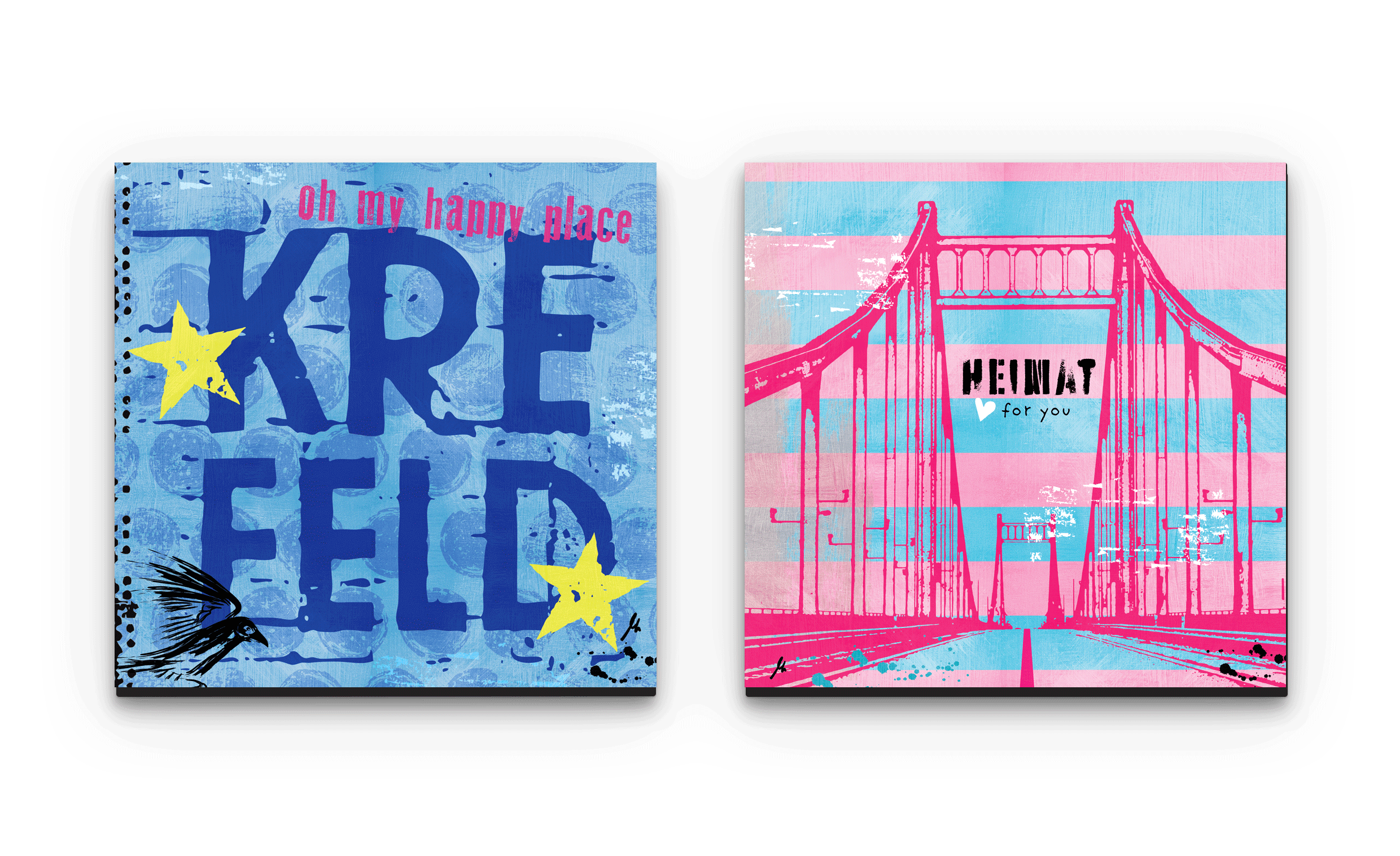 Mit dem Motiv Krefeld happy place auf Holz eine tolle Kombi  – mix and match!