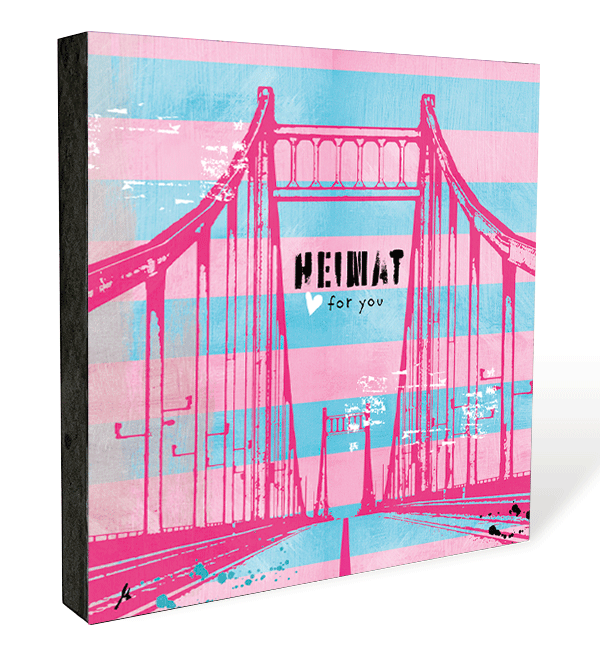 Wer kennt sie nicht, die markante Rheinbrücke aus Stahl in Krefeld-Uerdingen! Sie verbindet Uerdingen und Mündelheim und ist auch beleuchtet eines der wichtigsten Wahrzeichen der Stadt. Liebevoll bestaunt und verglichen mit der Golden Gate Bridge von San Francisco. Dieses Motiv zeigt die Perspektive auf der Brücke, eben dort, wo sich das Heimatgefühl einstellt, wenn man nach Hause kommt. Nach dem Motto: Heimat for you!
