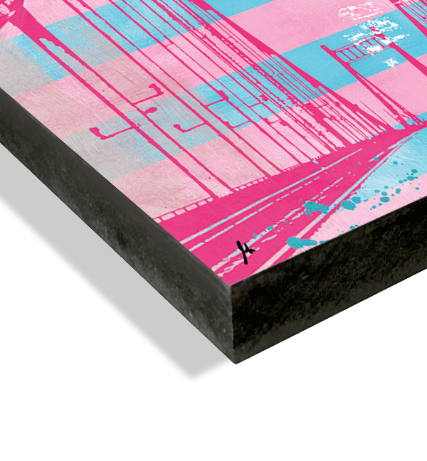• Digitaldruck auf MDF-Holztafel kaschiert.